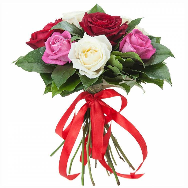 Яркий, экстравагантный букет из 7 роз разных оттенков. Насыщенный красный, нежный розовый, слепящий белый – все эти цвета слились в одном цветном вихре, пробуждая позитивные эмоции и радость. Оттеняет и служит фоном этим прекрасным цветам декоративная зелень, подчеркивающая их прелесть. Букет подойдет для светского мероприятия, официального празднования или для вручения близкому человеку.