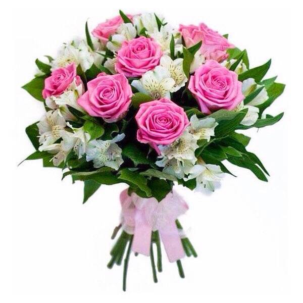 Нежные розы, дополненные снежно-белыми альстромериями – очень изысканная и красивая композиция, яркий пример грации и женственности. Такие букеты дарят людям, которых любят и понимают, к которым относятся с пониманием и особым трепетом.